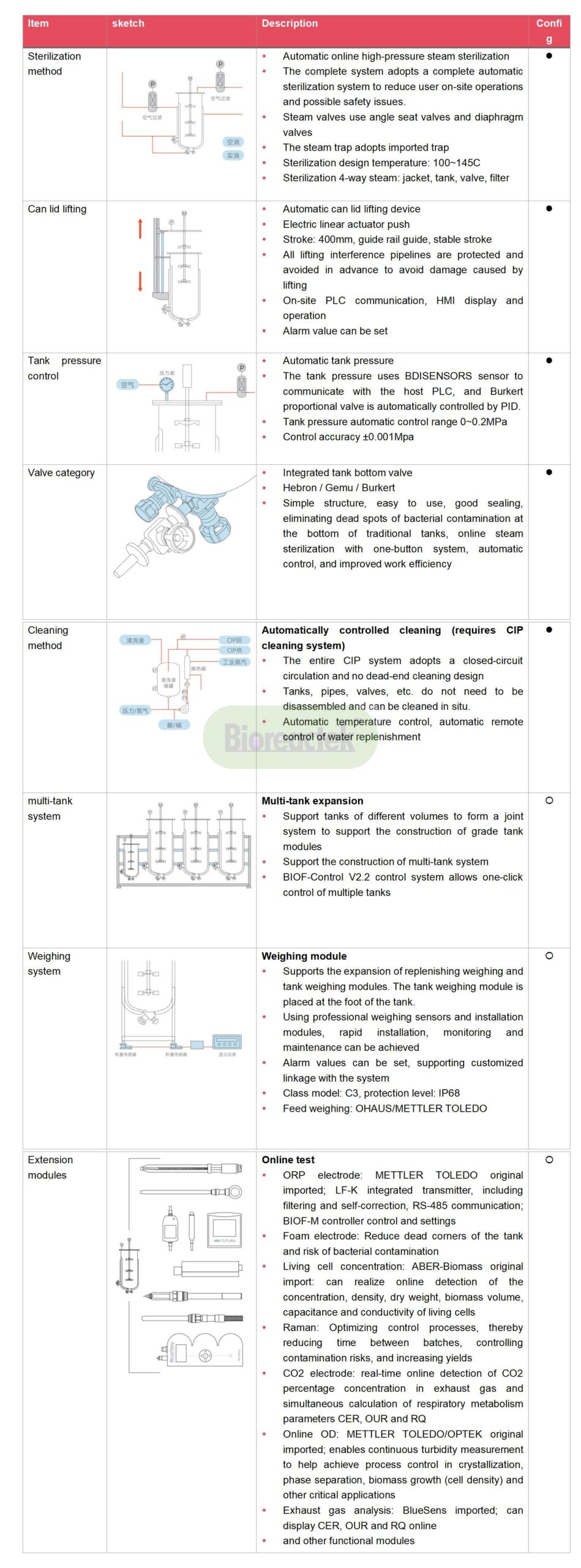 | DO | METTLER TOLEDO/Hamilton 0~200%, PID control, accuracy ±1% | ||||||||||||